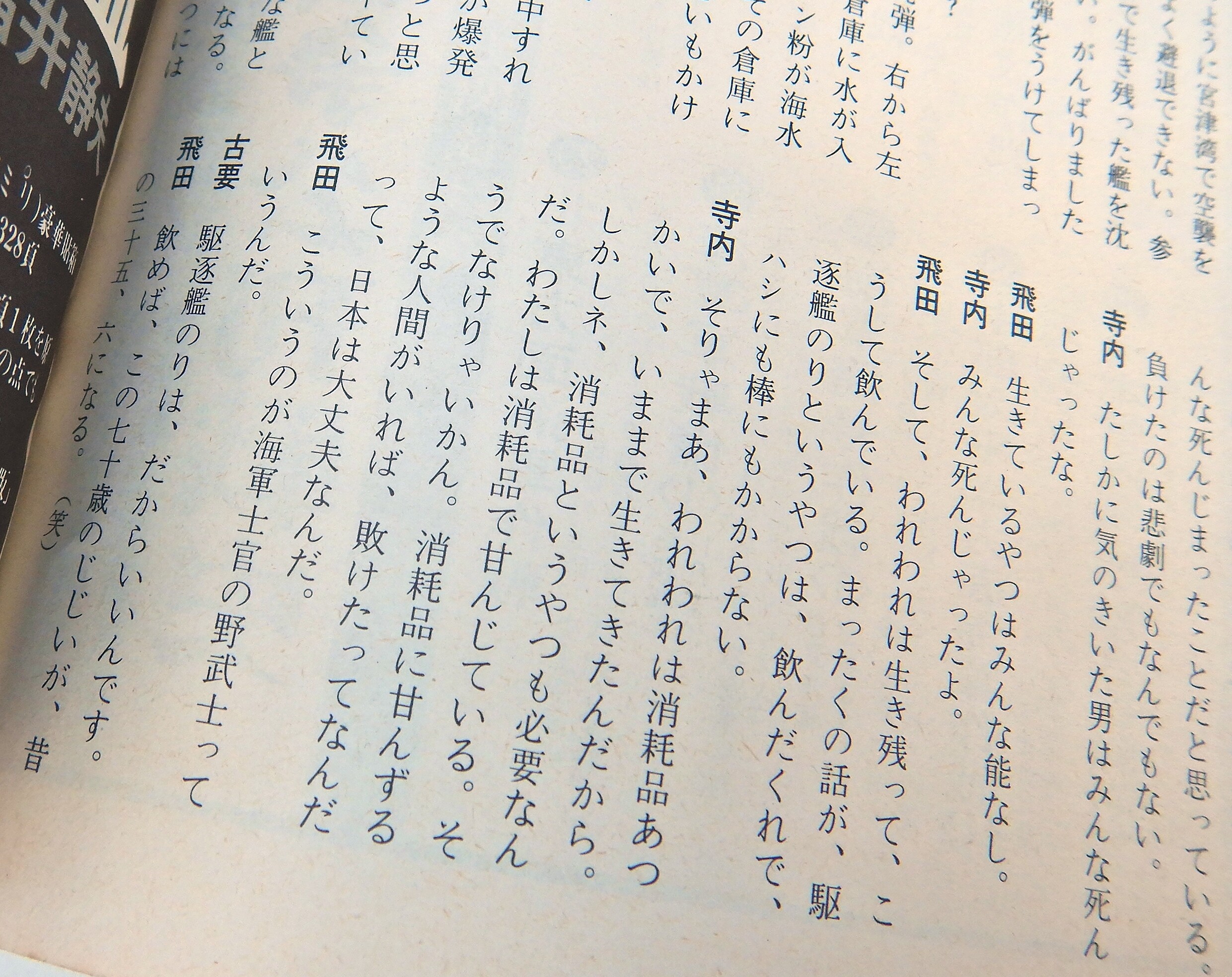 30歳くらいの頃に、この座談会の締め括りを読んで人生観が変わりました。子供の頃は、まずは戦艦で空母までしか興味を持てませんでしたが、以来、駆逐艦愛が炸裂し、現在に至っています。