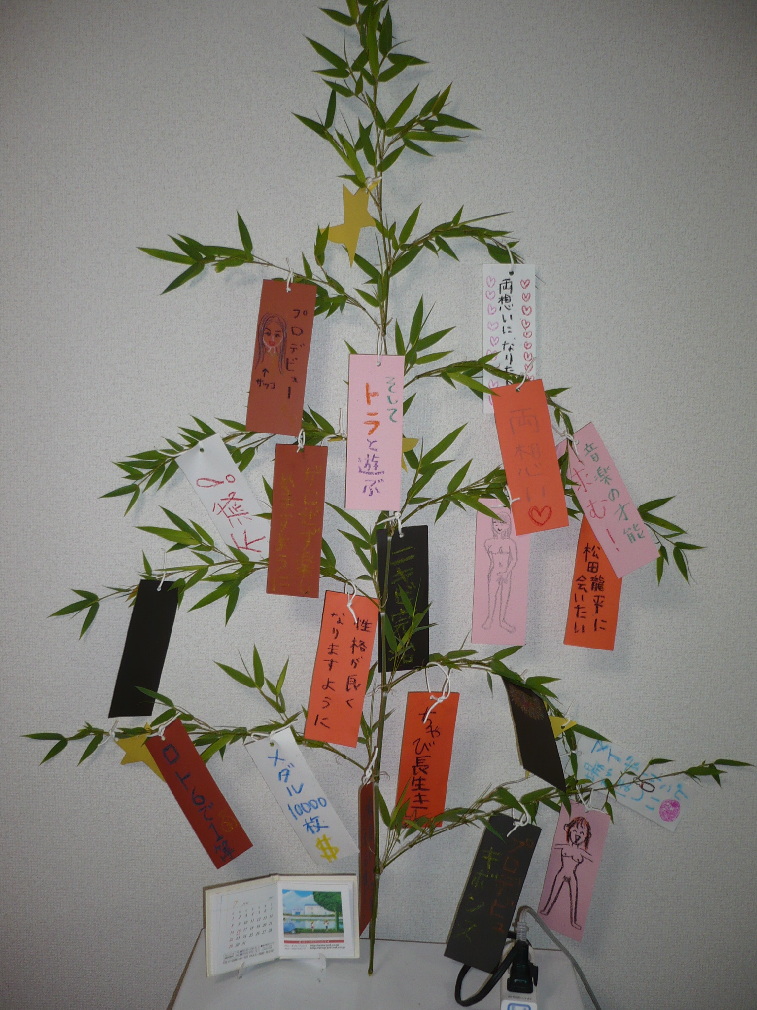 帰ってタンザク作った。願い事書きよったら、とまらんでね〜いっぱいになった。