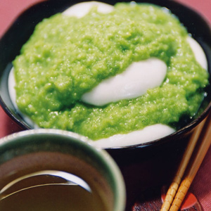 そばのいい香りのもちが...口に入ったらとろけ〜る〜