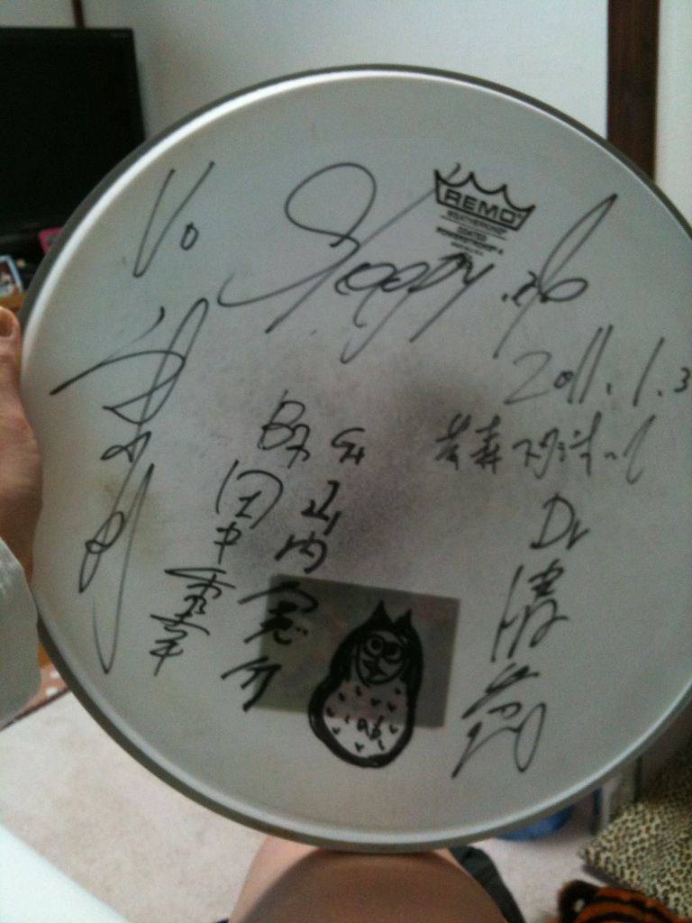 先日、スリーピーのサイン入りドラムヘッドを応募したら、見事当たったのー!