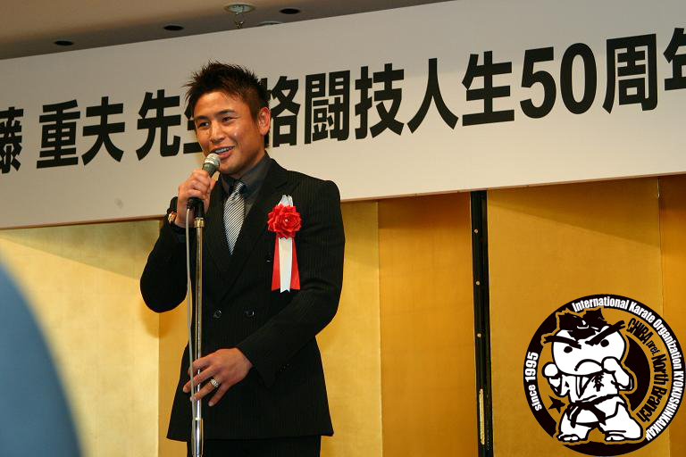 千葉県北支部の柿沼師範、極真会館の松井章圭館長、そして2008K-1MAXチャンピオンの魔裟斗選手を育てた偉大なる大先生「加藤重夫先生」の「格闘技人生50周年記念祝賀パーティー」が3月1日(日)都内のホテルで開かれました。
