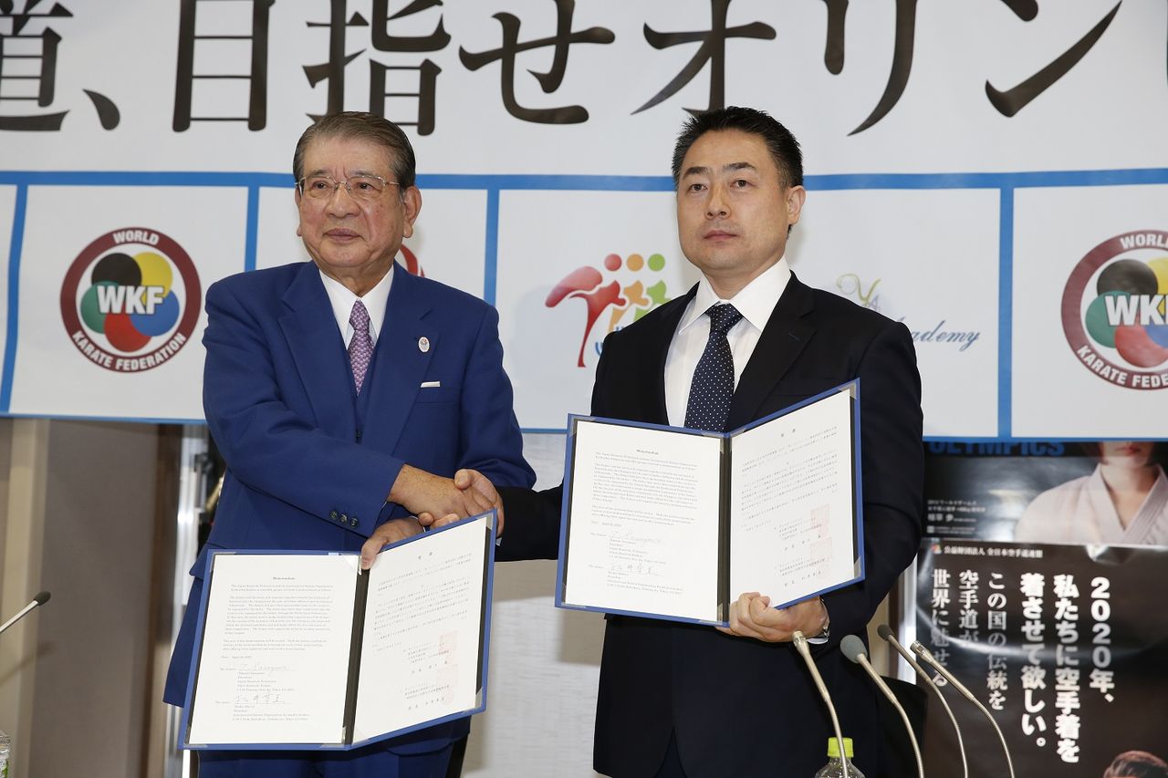 公益財団法人全日本空手道連盟と一般財団法人国際空手道連盟極真会館(館長・松井章圭)は、このたび空手道のより一層の普及・発展と、2020年東京オリンピック・パラリンピックにおける空手道種目採用に向けて、友好関係を構築し、互いに協力することとなりました。