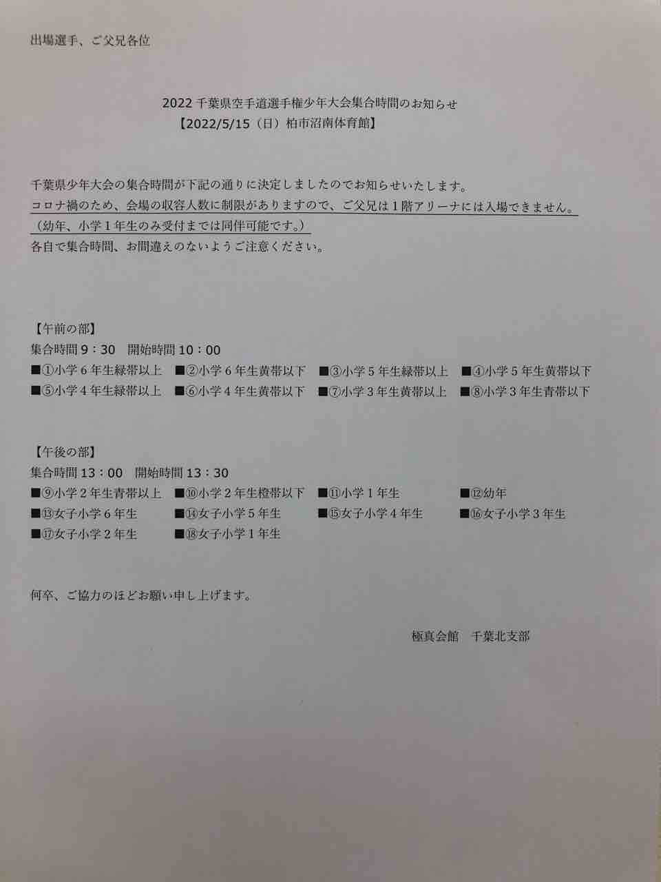 (船橋、イオン、武学塾、稲毛、本八幡市川の少年部の道場生対象)