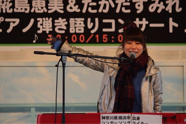 13時からと15時からの2ステージでした。野外ステージの為寒かったですが、2人とも元気に歌われていてお客さんもたくさんいてとっても楽しいライブでした♪