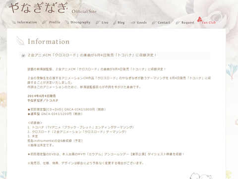 6月4日発売のやなぎなぎの新曲トコハナにクロスロードの収録キター!!
