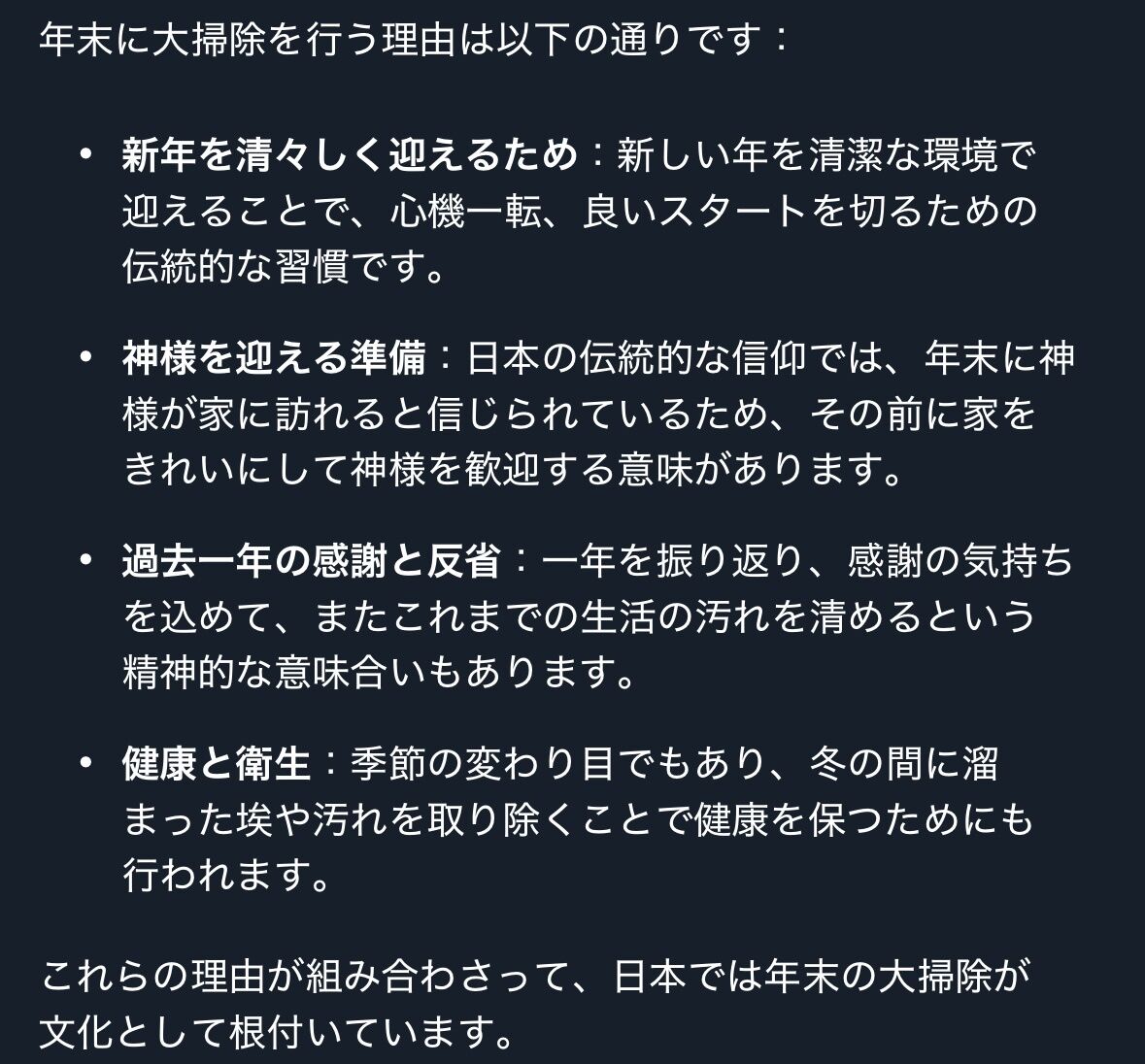 ちなみに、「大晦日」に大掃除をする文化なんて日本にはない。教育水準が低い地域は別だが。