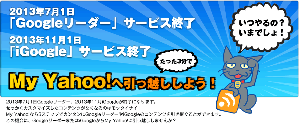 myyahoo覗いたら「iGoogleからの引っ越しツールはこちら!」とかあってワラタ