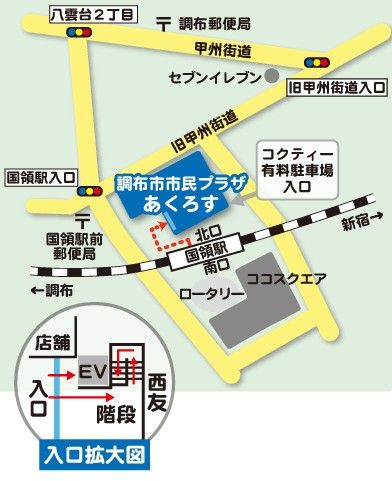 広場に面した正面入り口をお入りいただき、スーパー西友横のエレベーターで2階にお上がりください。