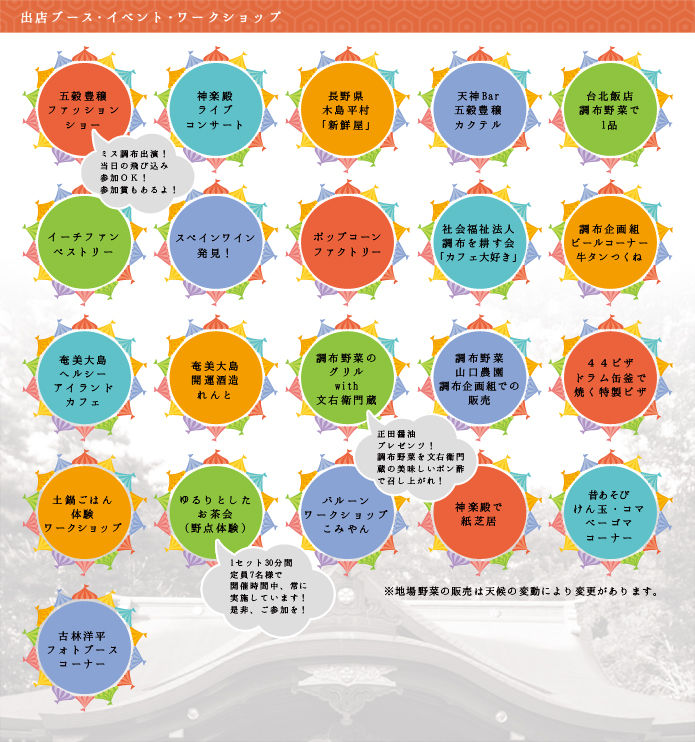 そんな「マルシェ型フェスティバル」を、「五穀豊穣 食に感謝」をキーワードにして