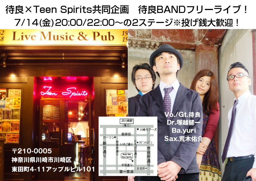 8月25日(金)川崎Teen Spiritsフリーライブ※(注記)バンド編成