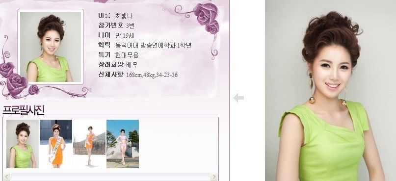 韓国のネット掲示板に2013年ミスコリア(大邱エリア)にエントリーしている女性たちの画像が紹介されていました。