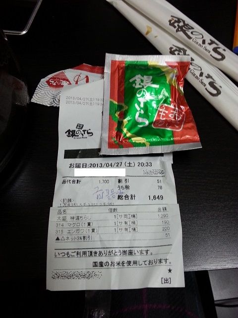 選んだ寿司屋は銀のさらという庶民の寿司屋だ