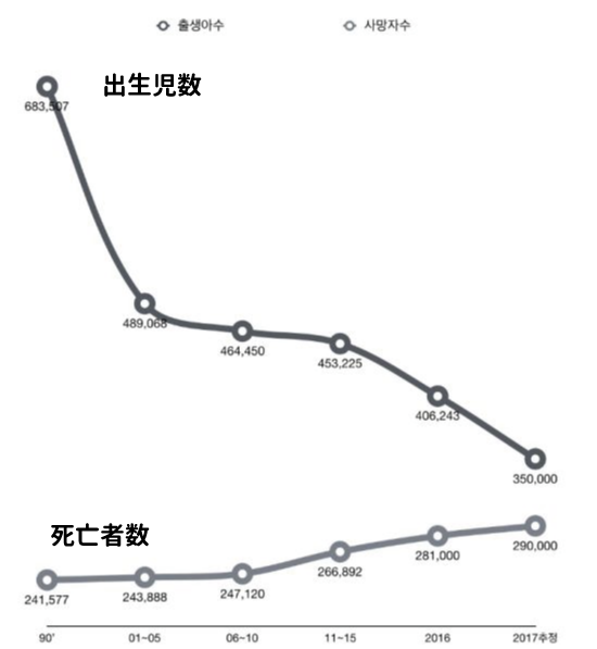 世界でブッチギリで先行して少子高齢化している日本だが、それを猛迫してサシに来て、これからブチ抜いて、置き去りにして、世界で未だ誰も見たことがない世界に一人で突入するのが韓国。
