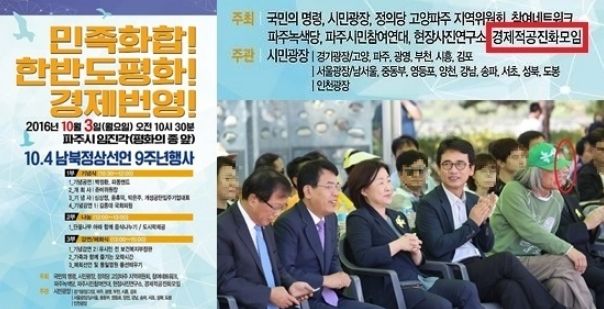 ドゥルキングが率いる「経済的な共進化会」は、2016年10月3日、京畿道坡州市の臨津閣「平和の鐘」の前で開かれた「10・4南北首脳宣言9周年行事」を共同主催した。
