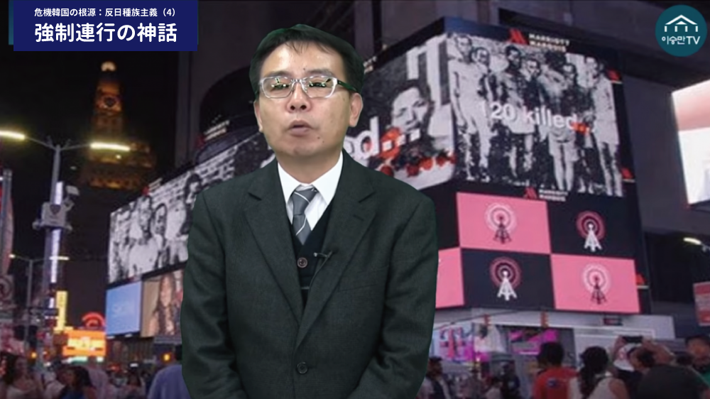 強制労役させられた日本人の子孫に代わって、日本政府に賠償せよとタイムズスクエアに広告www