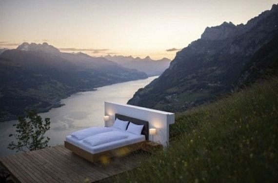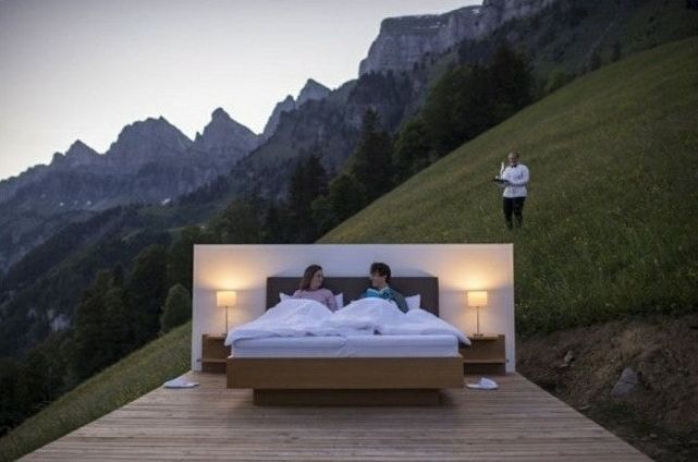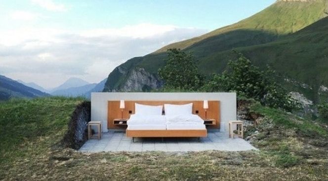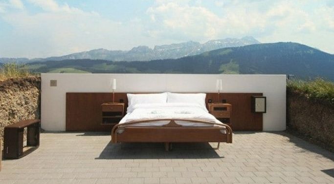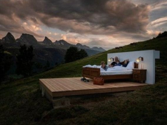ベッドの上に横になってアルプスの広々とした景観を鑑賞することができて、夜は空いっぱいに降り注ぐような星を見ながら眠る。