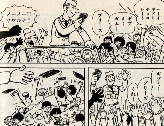 米兵は子供に優しいと見せかけるパフォーマンスであり乞食は日本人の金でチョコレートを配る米兵なのだ