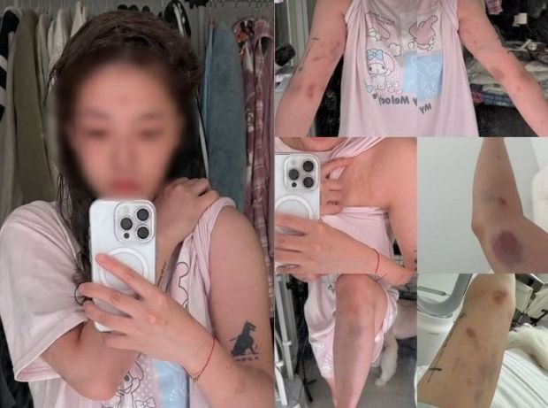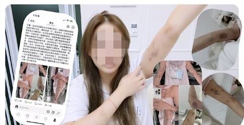 劉力穎は「翌日見たら全身があざだらけで、さらに親指は骨折していた」とし、手足にあざがいっぱいの写真を公開した。病院で診断書をもらった後、警察に再び通報する予定だと述べた。