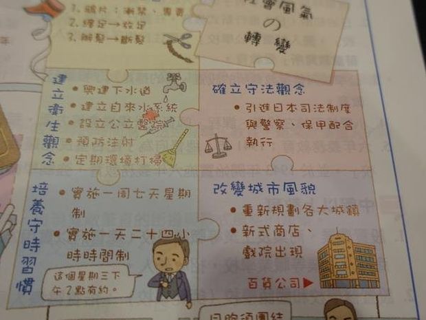 台湾の小学校の教科書では、日帝強占期を通じて台湾が得た肯定的な部分まで細かく扱っている。