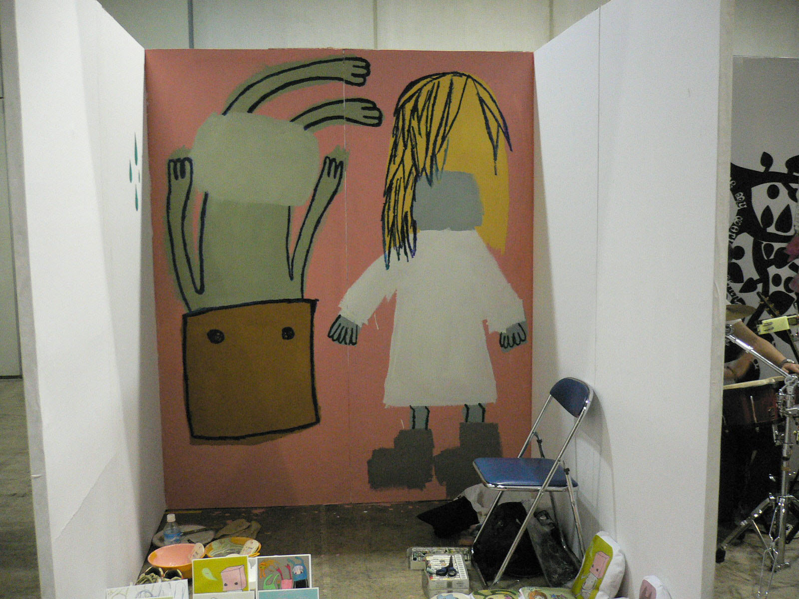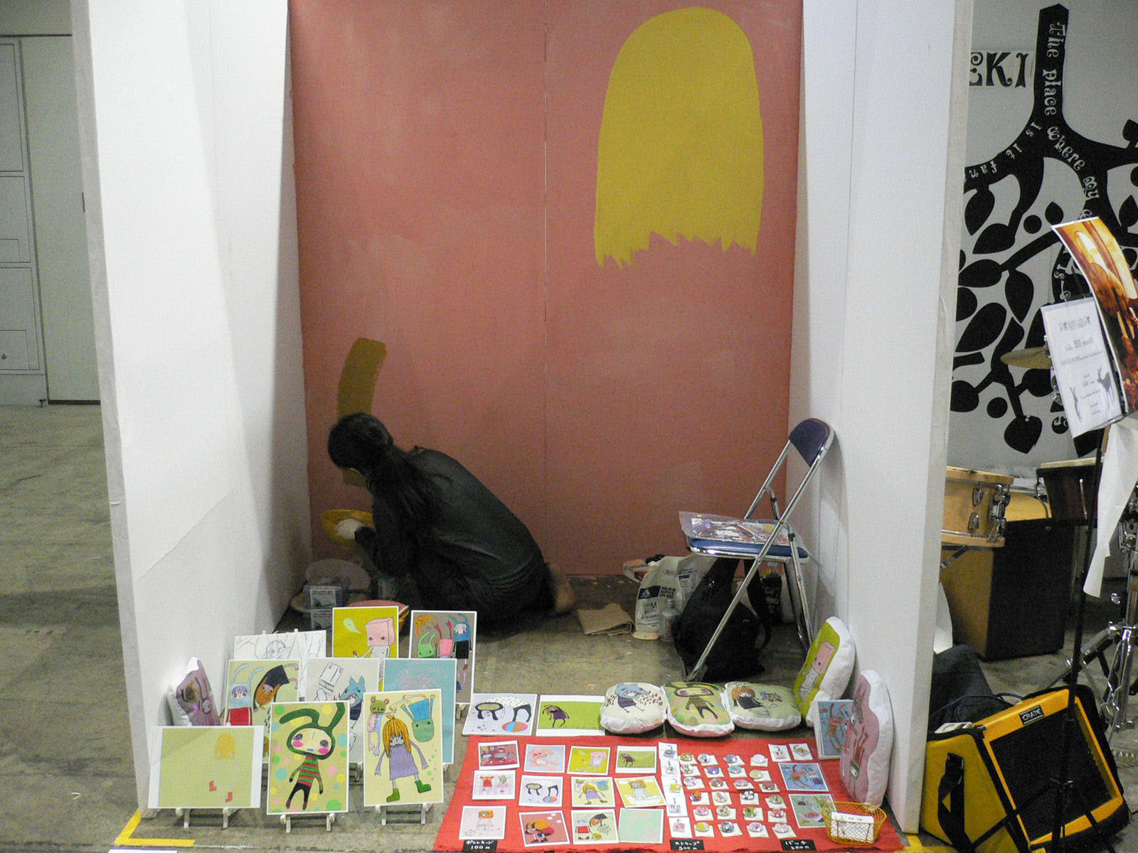 デザインフェスタのパフォーマンス終了!2日間かかりっきりで仕上げました。疲れた〜。でもいろんな人に声をかけられたり、作品の写真撮ってくれたり非売品をなぜか買ってくれたりと楽しい2日間でした。でもお客さんが何故あんなに外人さんが多かったのか...英語駄目だからドキドキした〜。裸足でパフォーマンスしたから足の裏が真っ黒に...グフッ。