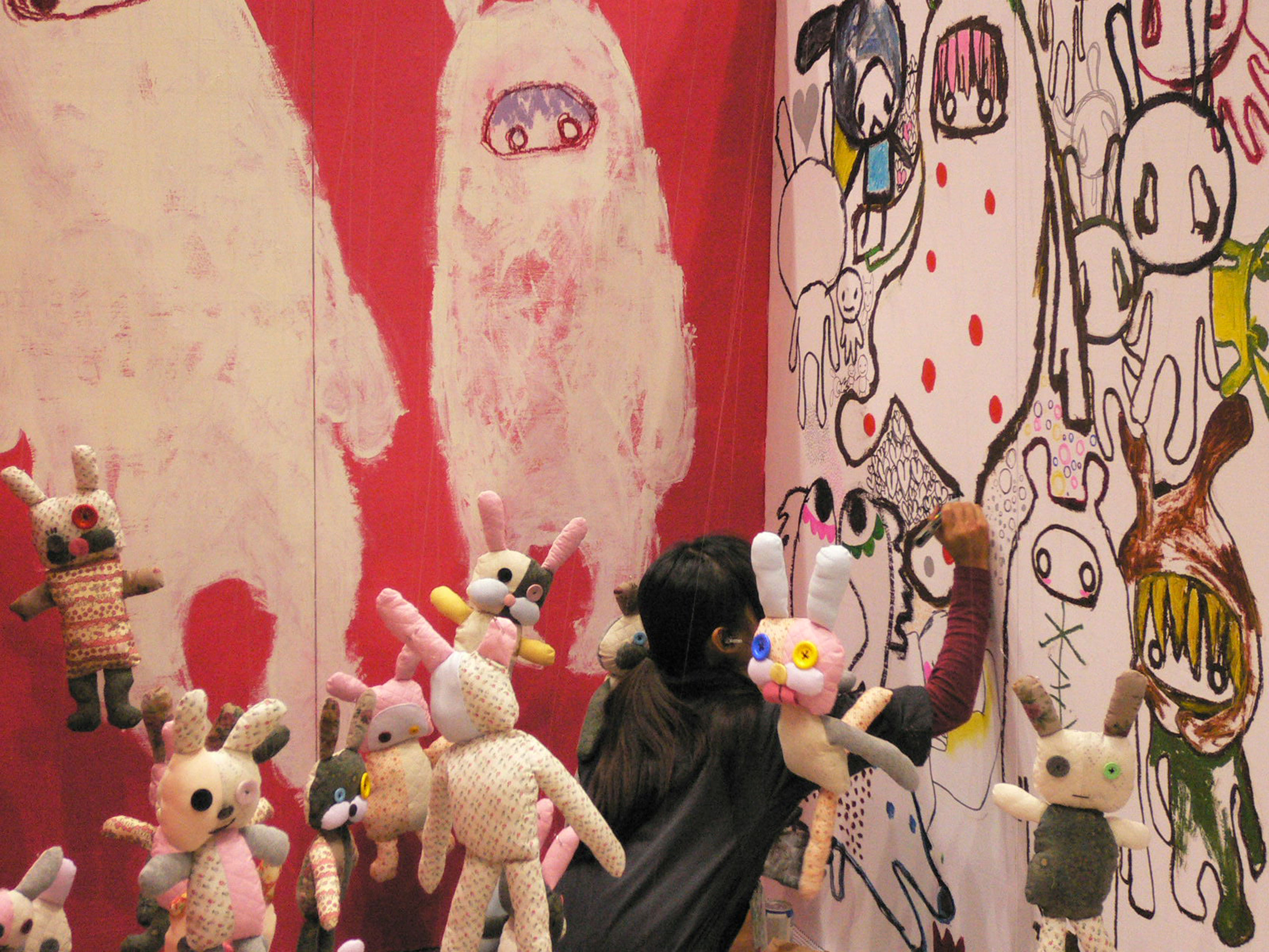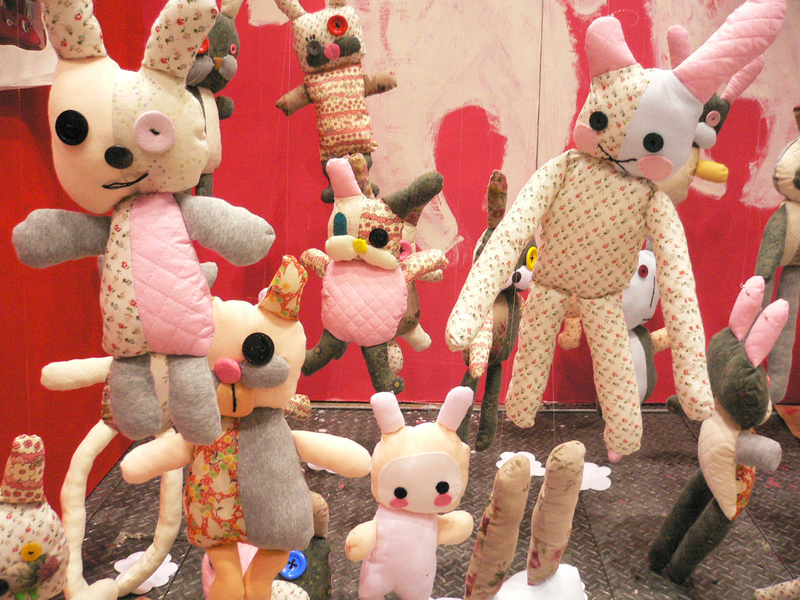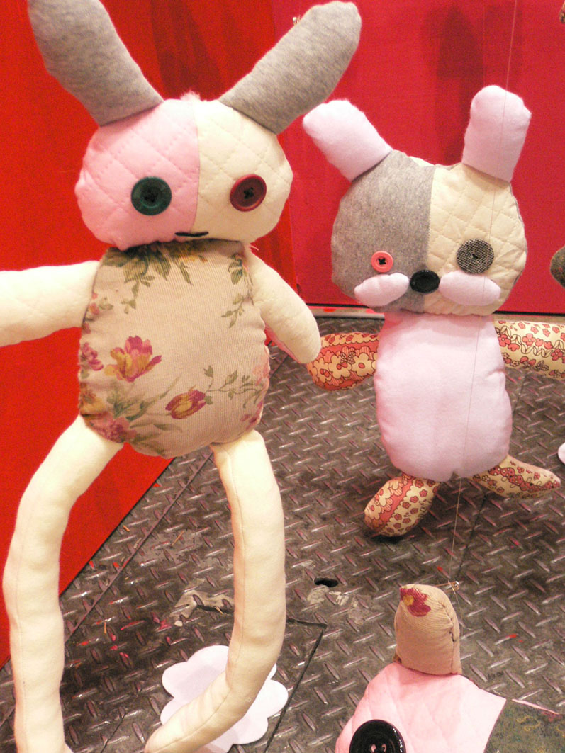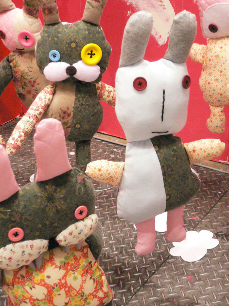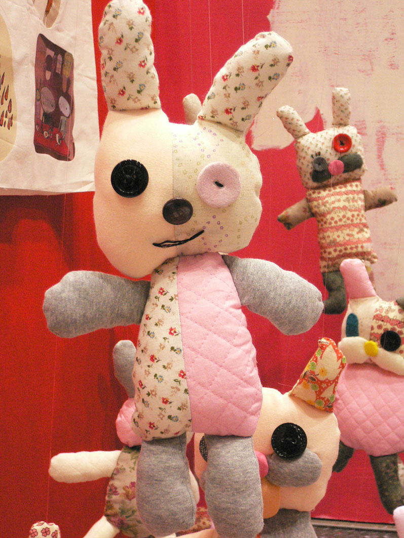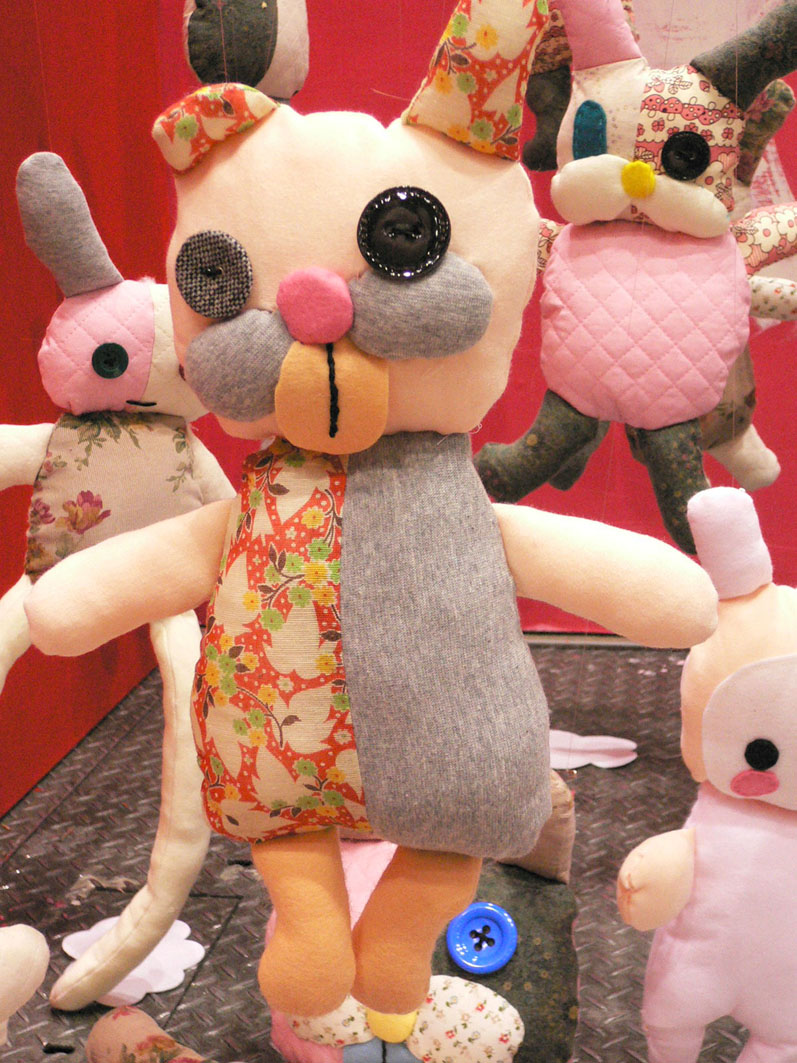 一見すると可愛らしい色合いのぬいぐるみなのですが、よく見ると目がチグハグだったり、牙を生やしているものもいます。