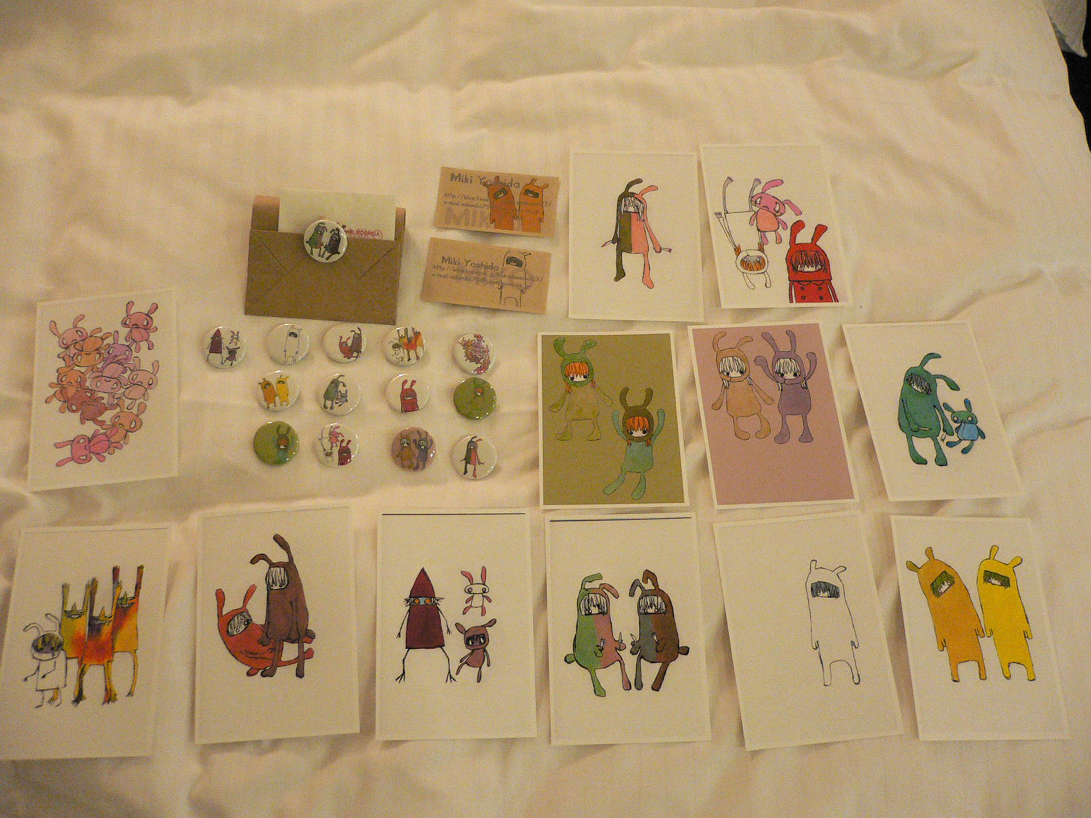 販売するつまりはないのですがいつも姉がカンバッチやポストカードを造ってくれます。