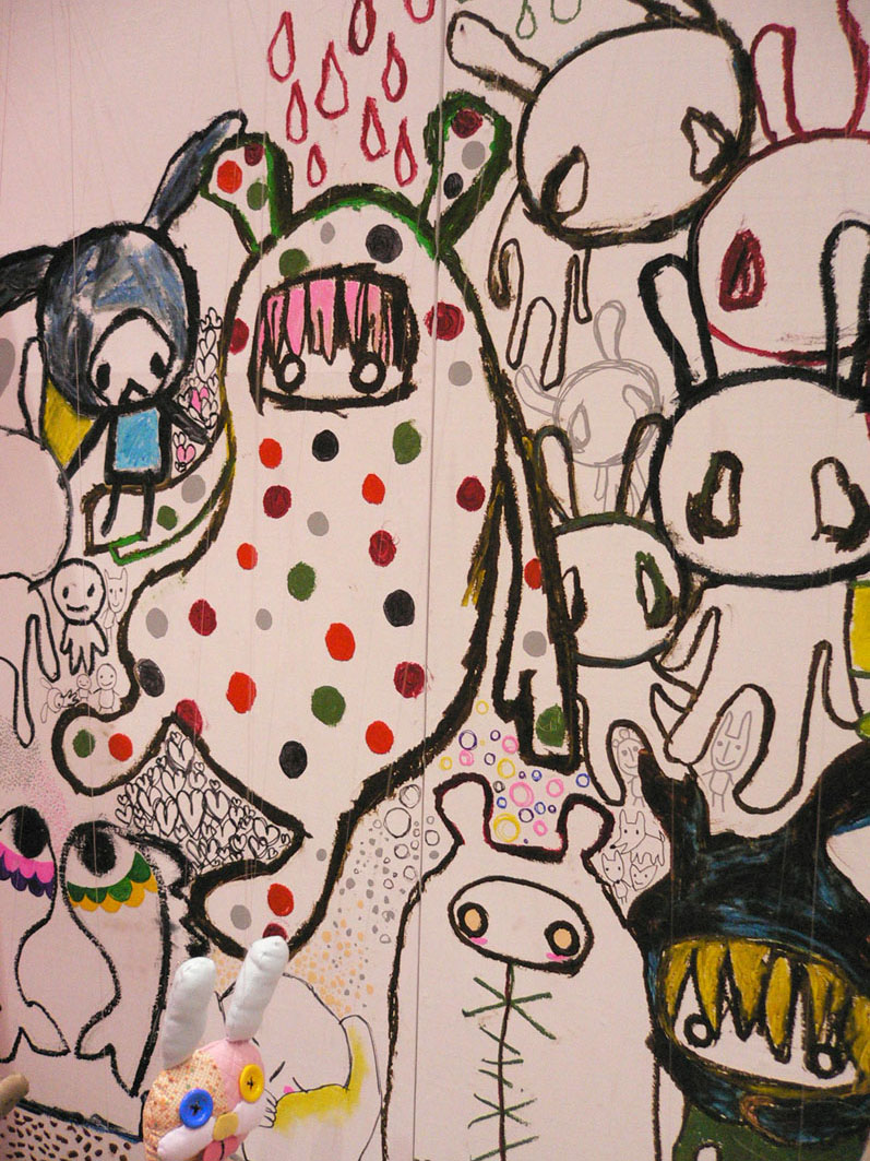 自分から私に話しかけてくる子、一人静かに筆を進める子、作品の中に必ず落書きをする子、音楽を聴きながら製作する子、来ない子...。