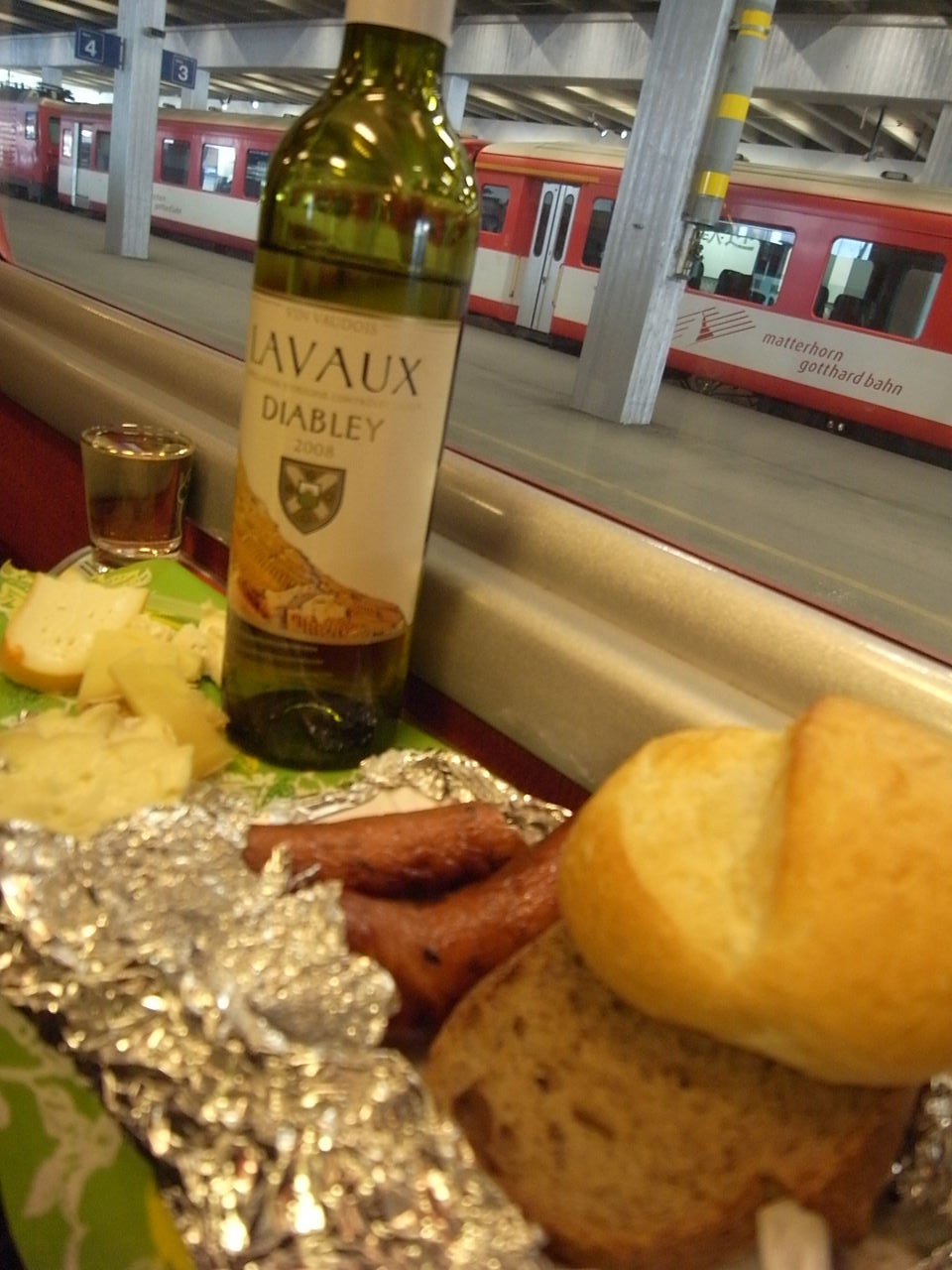 ツェルマットのチーズショップでチーズを買い込み、屋台のソーセージなどをテイクアウトして