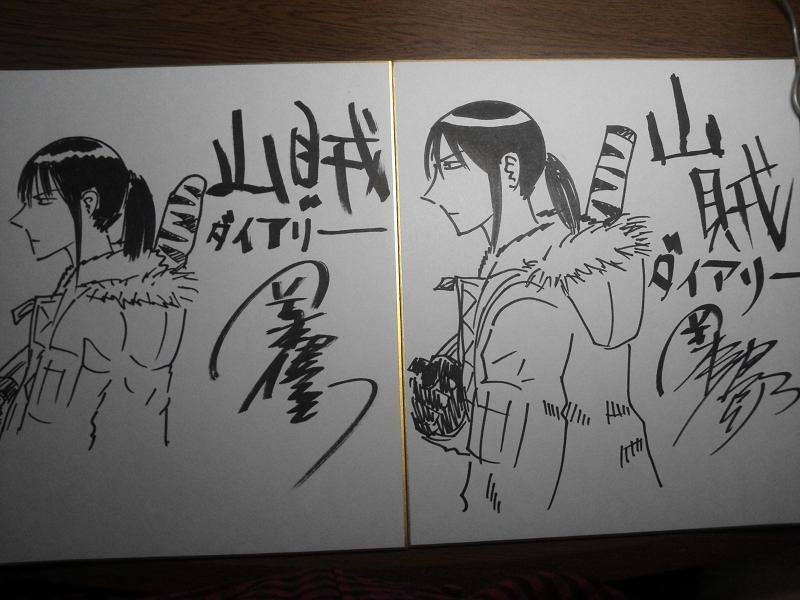 これはモンキーパンチ先生のサインですね・・おっとふざけてる場合じゃなかった。しかしこの先も担当さんに割とたくさん色紙を描く事があるらしいと聞いているので真面目に描くことにする。変なサインになっても近所の人なら温かく見守ってくれる・・とは思わないがスルーしてくれるだろう。地元で練習だと思えばいい。だいたい地元の人間がぼくの漫画を読んでいるとは思えない。そう思うと下書きするのすら馬鹿らしくなってきてがんがん描いてしまった。