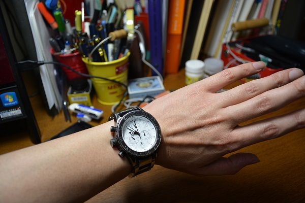 普段使っているのはNIXONの42-20っていうダイバーズウォッチでフェイスがかなりでかい時計ですが初見だと二度見してしまうほどデカイ51-30ほどは大きくありません。これは知人が手違いでオークションでふたつ落としてしまい、気の毒だったのでひとつ買ってあげたものでつけてはいるが決して気に入ってつけているわけではないという呪われた腕時計で、本当は黒っぽい塗装だったのを気に入らなかったので僕がペーパーで磨いて金属地を出しているんです。