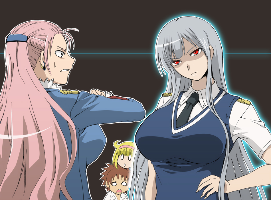 ↑『戦場のヴァルキュリア2』より、G組影の委員長にたじろぐA組ユリアナさんの図。戦ヴァルでは胸囲=戦闘力が基本。