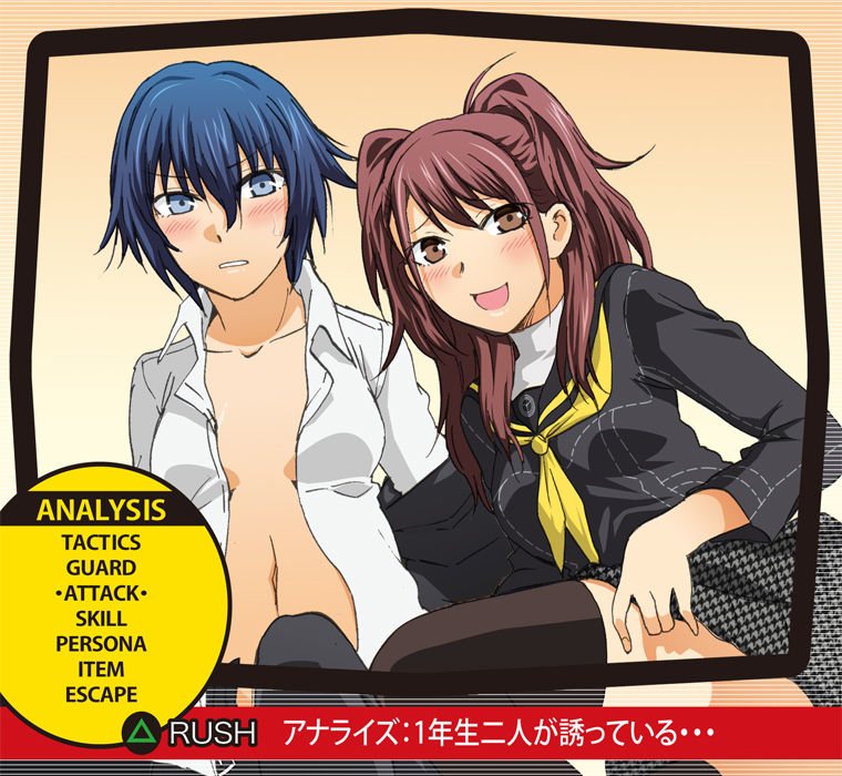 ↑『P4』より、誘ってる風の一年生女子ふたり。視界の主はもちろん番長(主人公)でしょう。