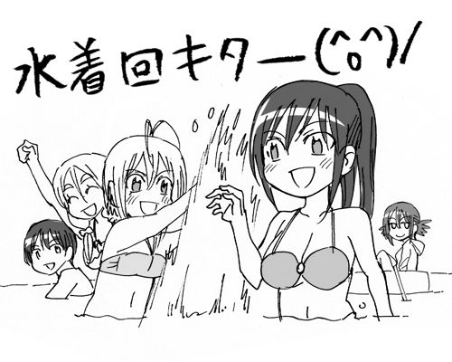 色々たわわだったり、如実に戦闘力の差が出たり、モヤ姉が毎度恒例妄想からの暴走を見せたりしています。夏の利点ですね、水着を遠慮無く描けるのは^^