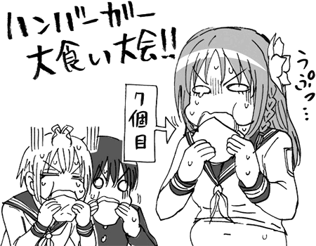 今週最大のハイライトと言えば、やはり靄子と香澄のコスプレ姿でしょうか(イラスト参照)。