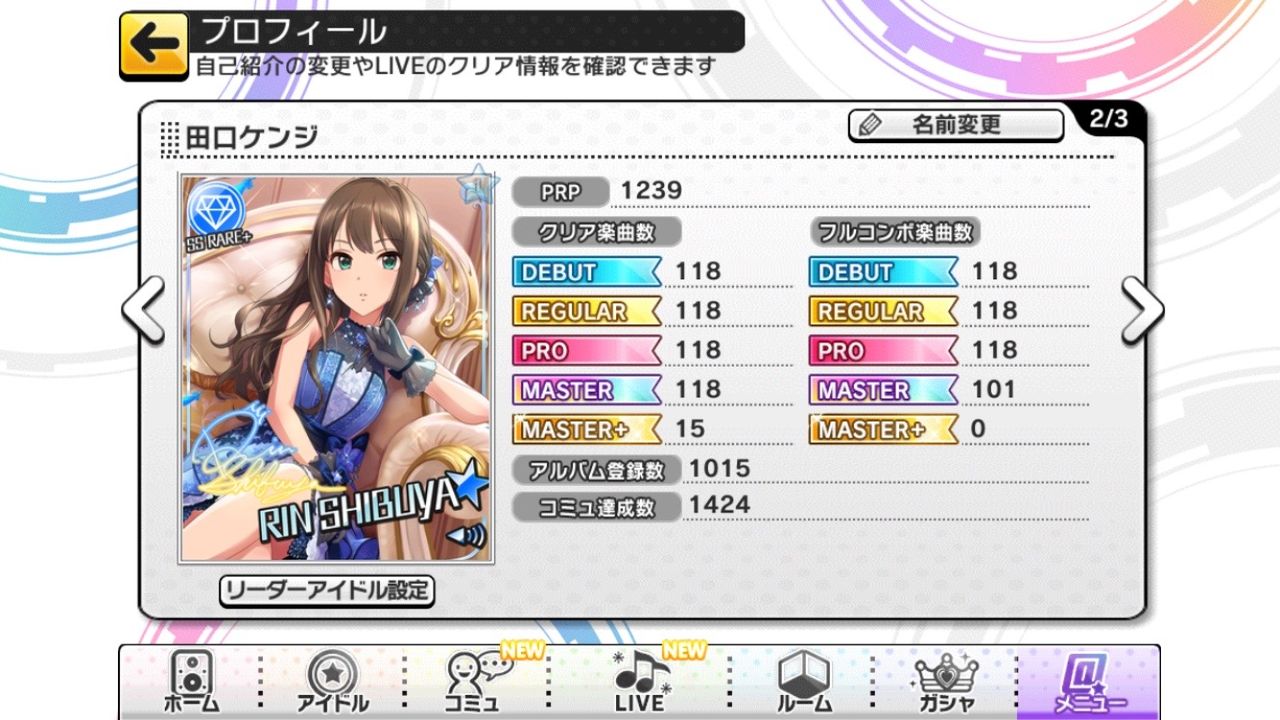 フルコンに関しては100以上はザラにいますが、アルバム1000越えはランキング上位勢や廃課金ユーザーでも滅多に見ない数字なので、これはPとして誇らしい成果。