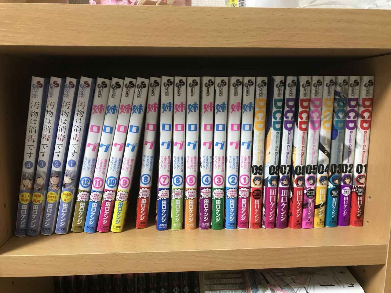 自分の歴代漫画作品も片付けついでに並べてみました。こう見ると僕も結構本出してますね。8年で25冊ですか。