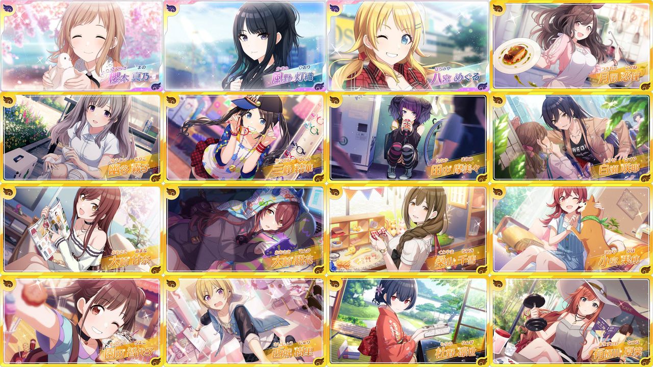 ↓がキャラ一覧。みんな可愛い...第一印象では白瀬咲耶と西城樹里の2強ですが、ゲームやり始めると担当がガラッと変わることはアイマスあるあるですしね。