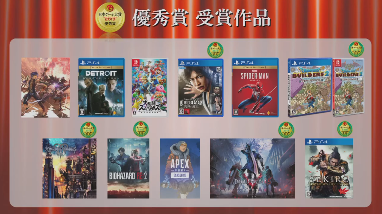 ノミネート11本の内、『デトロイト』『ジャッジアイズ』『スパイダーマン』『キングダムハーツ3』『DMC5』『SEKIRO』の6本をプレイしましたが、納得の選出。この6本は面白かったですから。