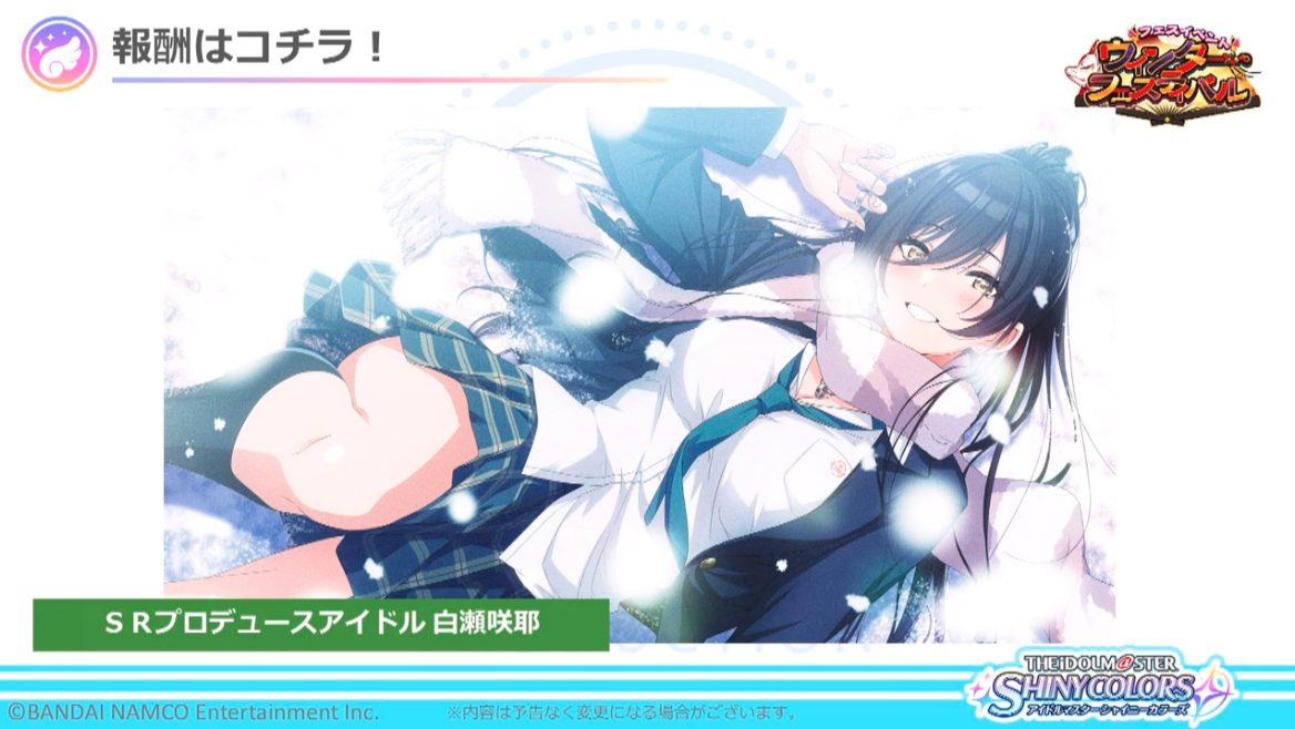 シャニマスの次回イベントの報酬SRがヤバい......この白瀬咲耶、僕の理想の"すべて"が詰まっています。表情も状況も脚の感じもすべて満点。