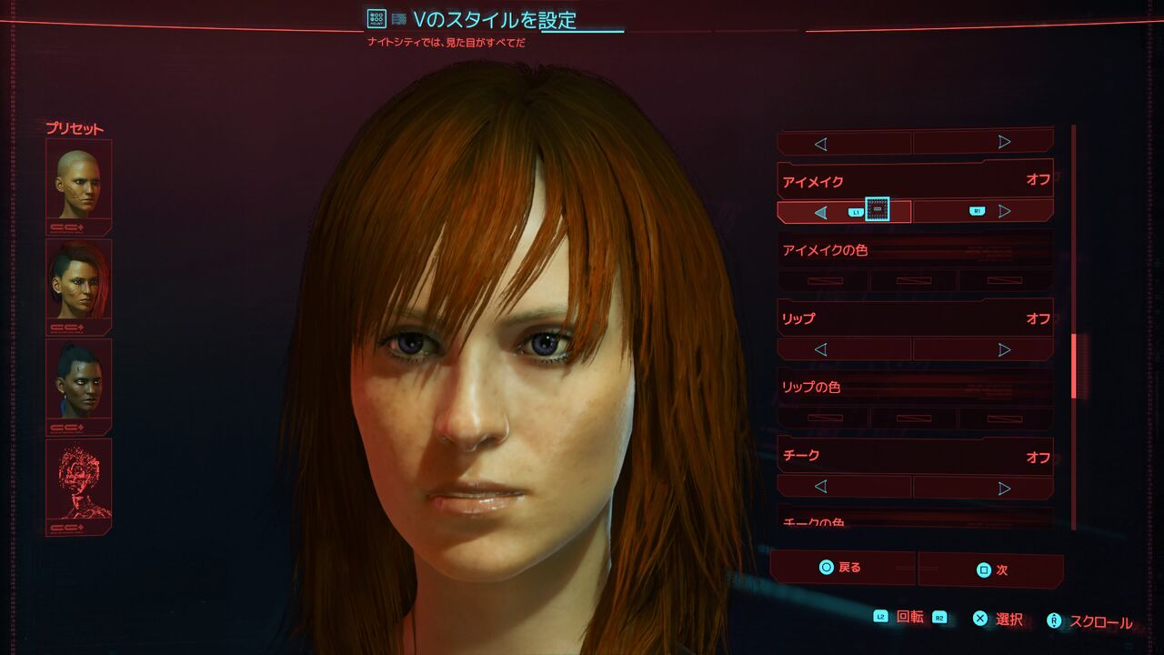 和ゲーは女主人公、洋ゲーは男主人公を基本使う僕ですが、サイバーパンクのメーカーはウィッチャー3と同じところで、ポリコレとは無縁の美人を作れるので、画像の女の子で始めました。