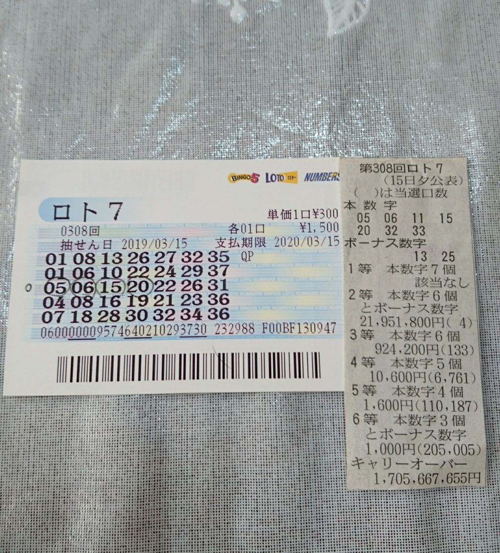 ...私も最近はロト6は当たる気がしなくて、ロト7