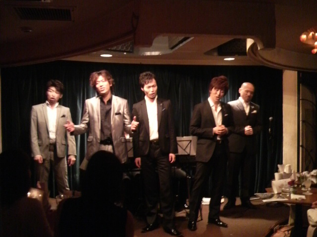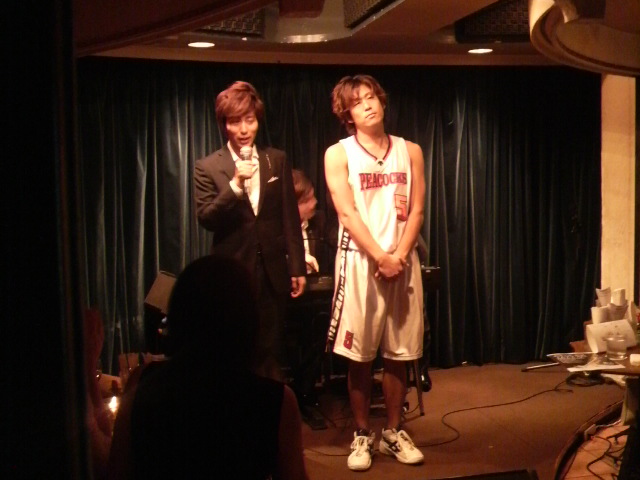 それぞれソロを歌い、学生の頃の思い出などを話したんですが、リョウサンは歌よりもバスケに夢中だった...ということで、一人バスケのユニフォームで登場しました(笑)これにはお客さんも大ウケでした(^O^)歌うときはちゃんとスーツに着替えてましたけどね。個人的にはユニフォーム姿で歌って欲しかったです♪