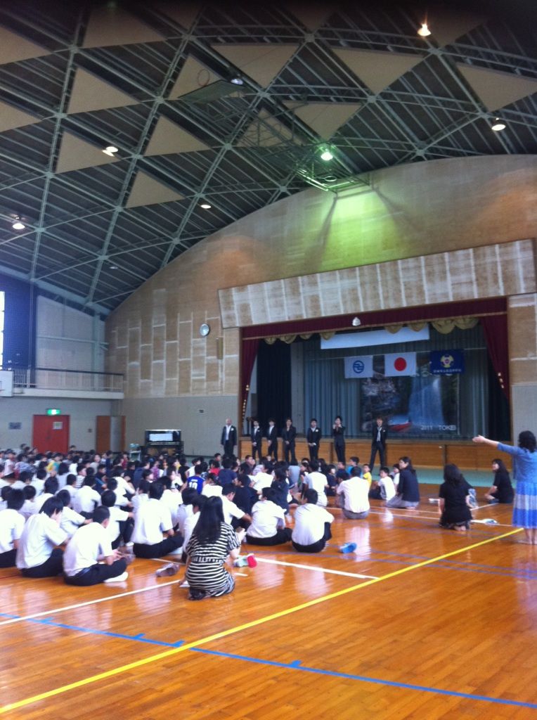 近くの東渓小学校の生徒も一緒に聞いてくれました