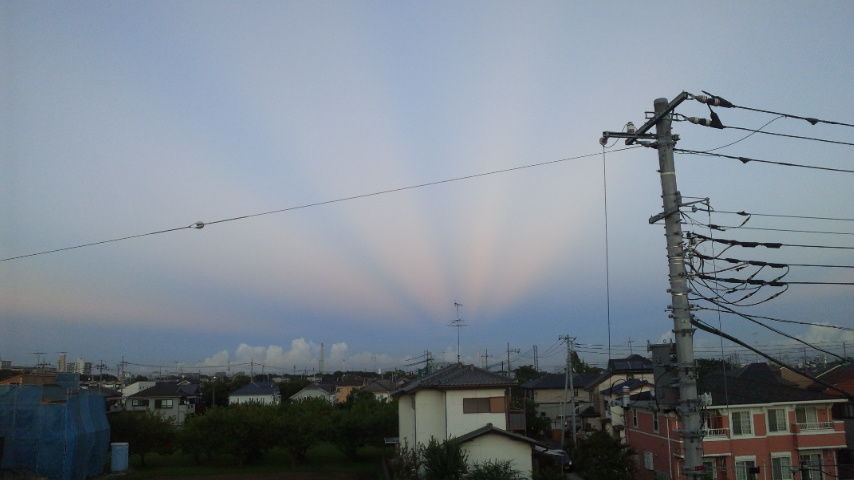 放射状に伸びた雲に夕日があたって、まるでTDLのスペースマウンテンの最初の坂を登ってる時のあの光のよう(説明が長い)