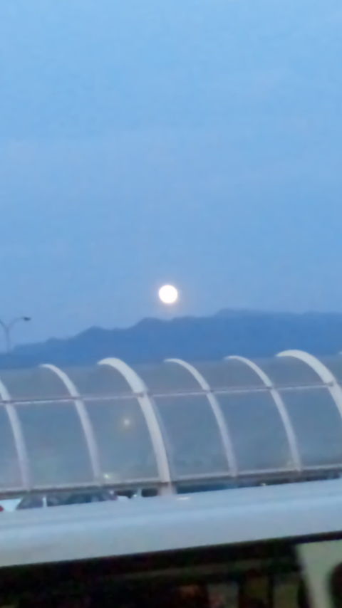 長崎空港に着くとちょうど満月が顔を出した所でした