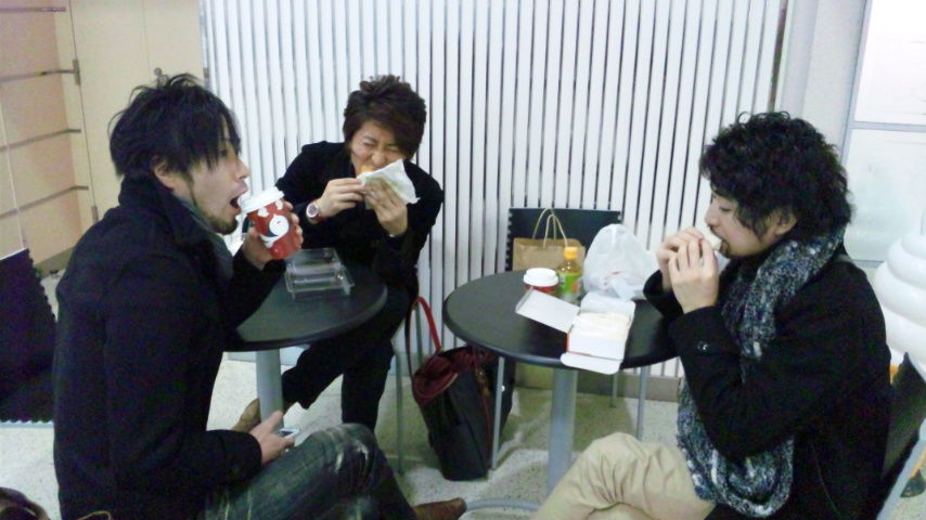 リーダーとバリトン2人は、佐世保バーガーと玉屋さんのサンドイッチを頬張っていました