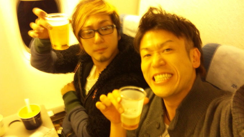そのままエンジンがかかってしまい、結局飛行機の中でも殿下と乾杯を