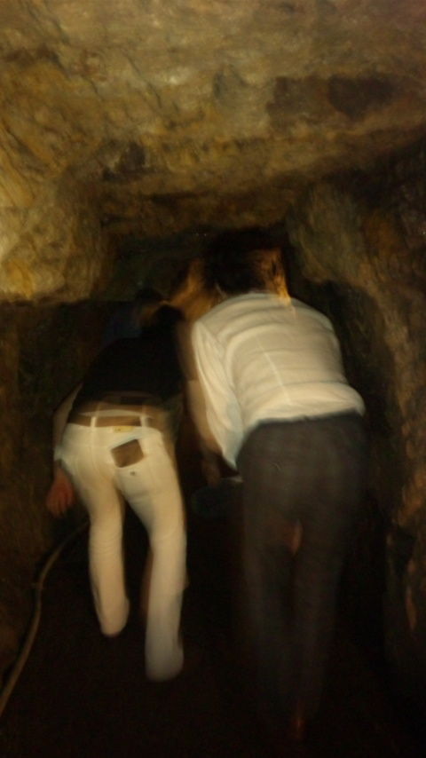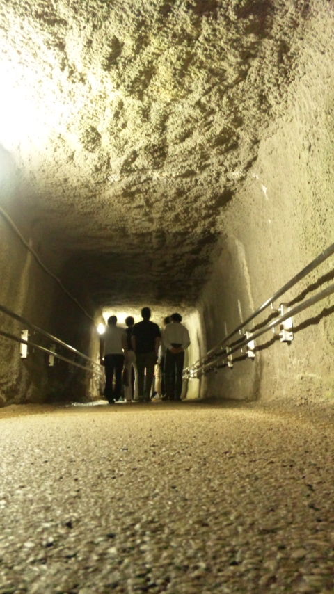 間歩に入る前にガイドさんから「天井が低くなってるから気をつけてくださいねぇ」と言われ用心して入ったのですが、ソッコー頭をぶつけた大田出身のアキラちゃん