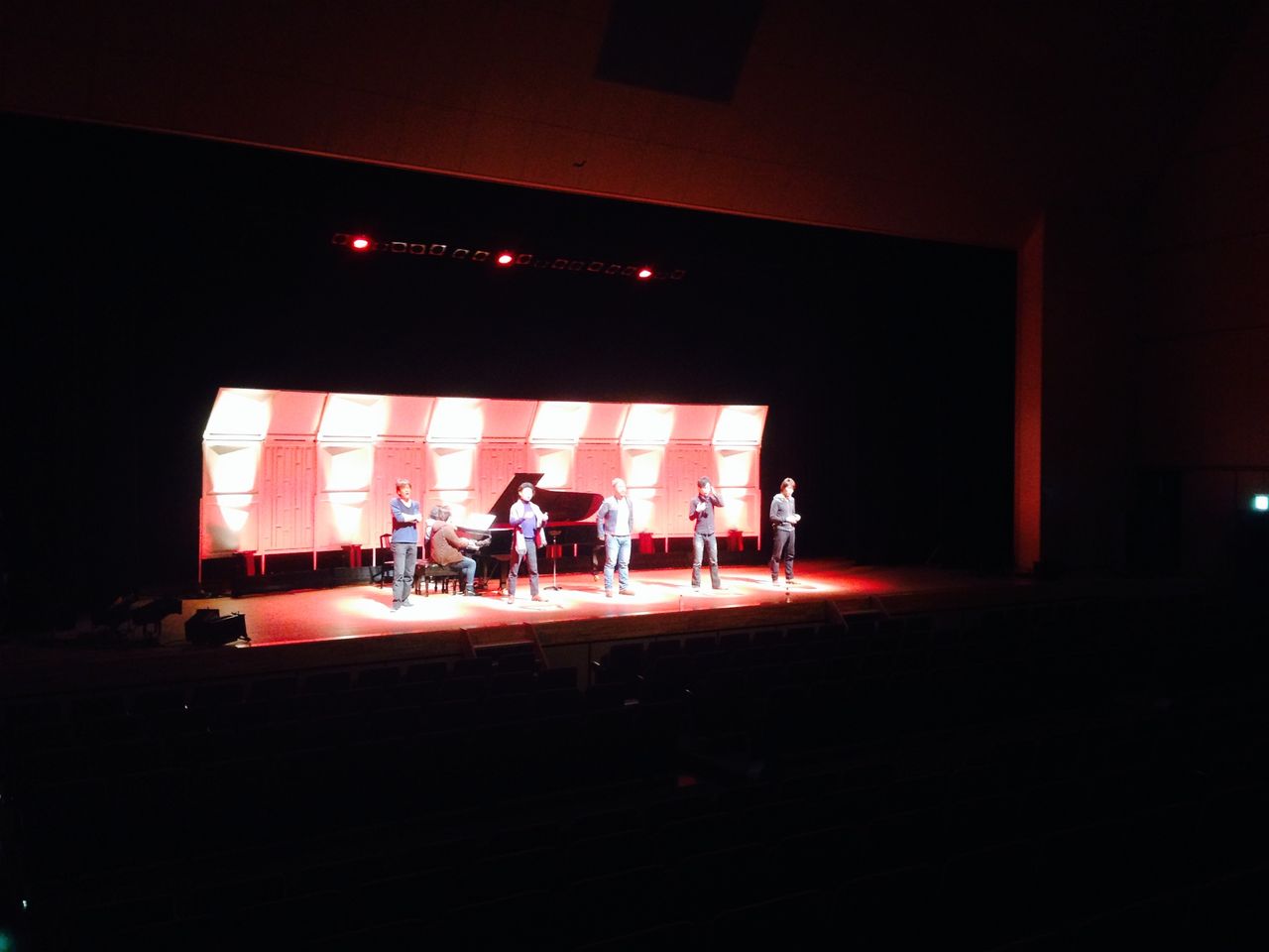 今日は下関市民会館のスタッフの皆さんがお手伝いに来て、素敵な舞台を作ってくださいました
