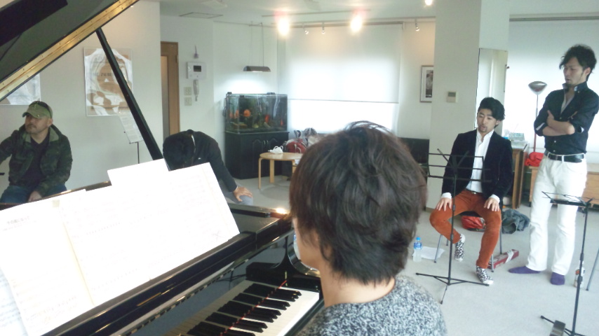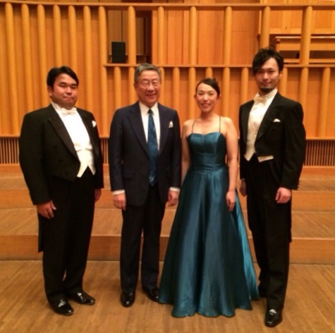 ♪写真左から、宮西一弘さん(テノール)、佐藤公孝先生(国立音楽大学 名誉教授)、熊坂真里さん(ソプラノ)、菅原浩史(バス・バリトン)